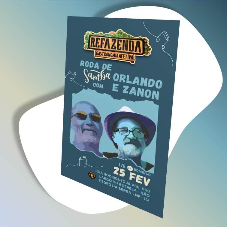 Domingão de Carnaval, 11 de fevereiro, a partir das 19h, no Refazenda a folia com a Roda de Samba de Orlando e Zanon, com muito ziriguidum de folia carnavalesca.